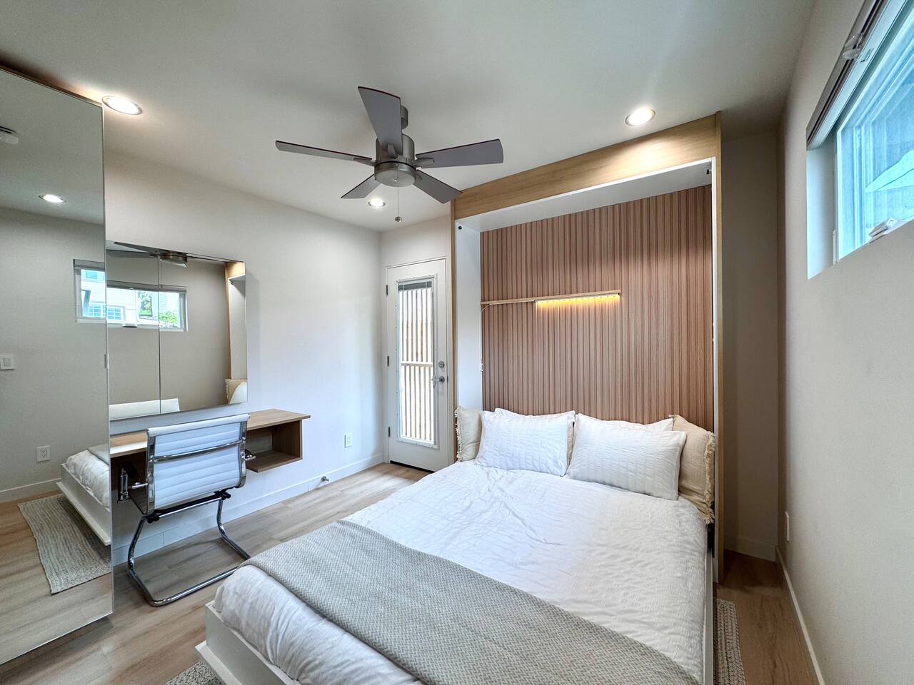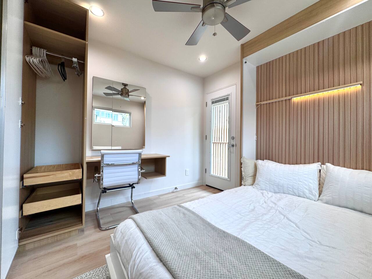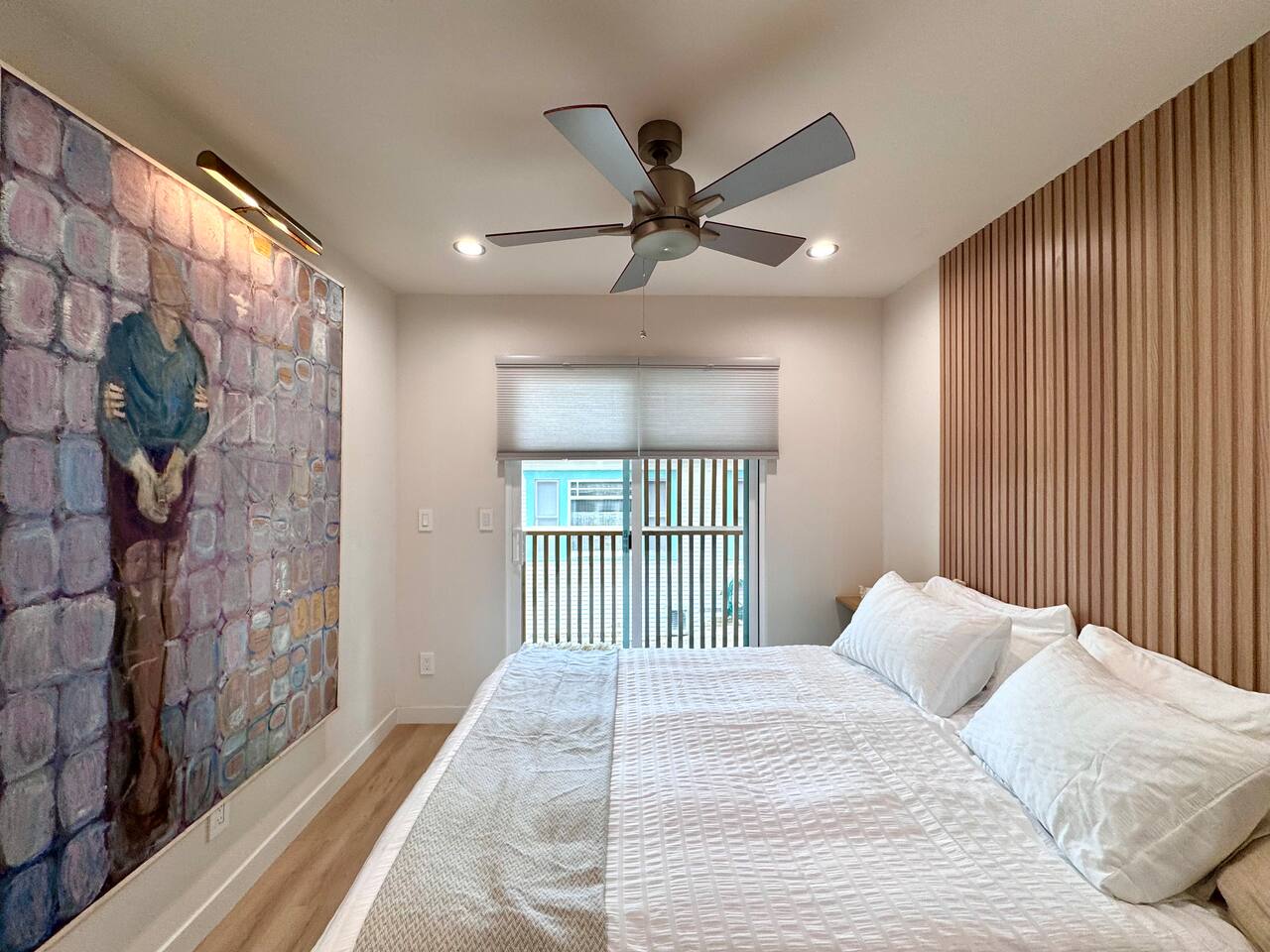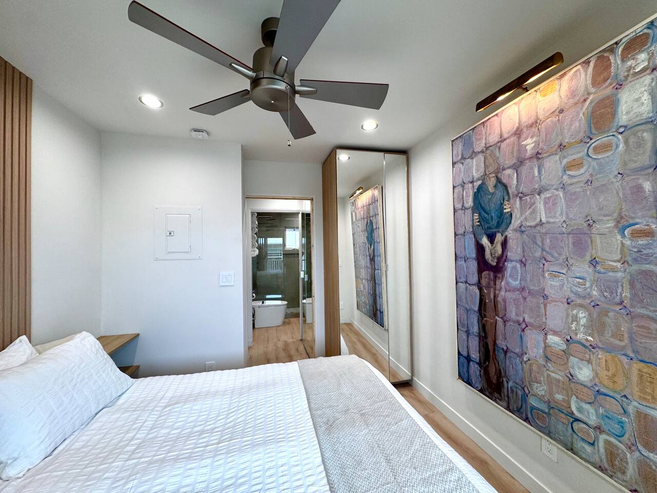 The home is conveniently located off Interstate 5 Freeway with access within minutes to 94 and 163 freeways. Private parking space (please pull in to the left side of the driveway). You’ll receive an access code on checkin day. Door automatically locks after you, or press “lock” on the keypad.