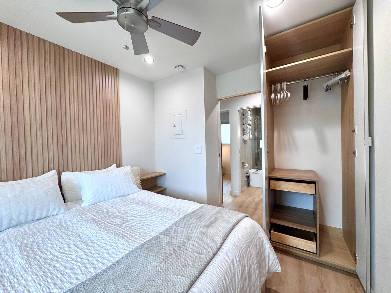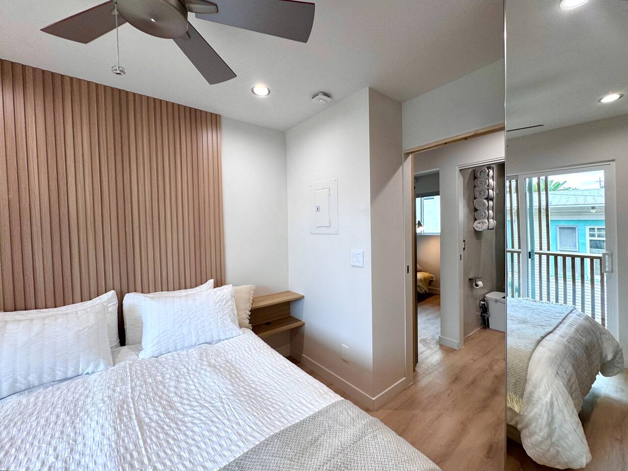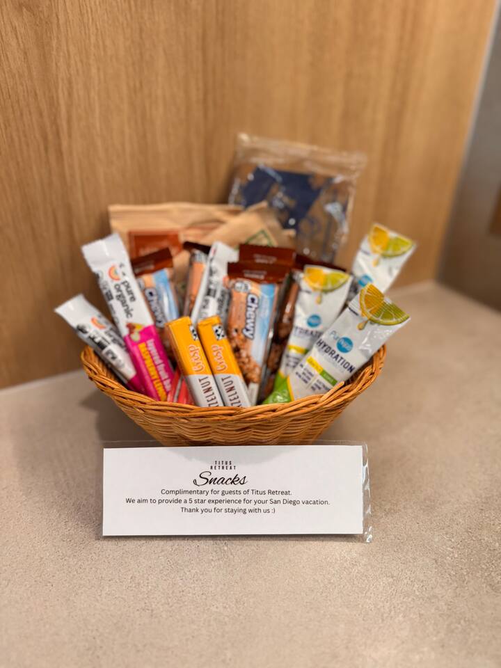 If convenience, independence, and elevated comfort is a priority for you, Titus Retreat is ideal for your vacation or extended stay. Enjoy vivid sunsets, sunrises, bay and city views in this west-facing iconic San Diego neighborhood. The home is designed with you in mind. Full-length mirrored closets, memory foam queen beds, and black out curtains. Spa-like, modern bathroom with rainfall shower, multiple body jets, and smart bidet toilet with a heated seat. Smart TV with complimentary movie apps. Full in-unit laundry amenities with ironing board and laundry essentials. Full kitchen with brand new, high-end modern appliances and cooking essentials, including a dishwasher, gas range, microwave, rice cooker, and smoothie blender. Hot beverage station features a coffee machine with pods, and tea kettle with assorted teas. Enjoy filtered water on tap. Craft ice molds in the freezer with various sized filtered ice cubes for optimal beverage experience. We provide a microwave-popcorn popper, spices and cooking basics, and a fully loaded snack basket with vacation essentials ~ electrolyte packets, on-the-go snack bars, and instant breakfast. The location is incredibly convenient because of the proximity to the highways, 5-10 minutes to beaches, Zoo, North Park, Balboa Park, Little Italy, and more. Or, take the San Diego Trolley, which is just a short 5 minute walk from Titus Retreat. Guest guidebook features recommendations and trolley info, or reach out to your host for more tips. If you bring a vehicle, you will have parking space in the private driveway, plus ample street parking with no restrictions. A few highlights about the walkable neighborhood: Titus Retreat is one minute walk to Robin’s Egg nature trail, which will take you on a 10 minute medium-difficulty hike along a mansion-studded canyon up to Mission Hills and Hillcrest neighborhoods. Historic Pioneer Park is at the top of the trail. Mission Hills is known for its timeless beauty and historic homes. Hillcrest is famous for its vibrant nightlife, vintage shopping, and inclusive community feel. One stop away on the trolley or a 10 minute walk to San Diego’s famous “Old Town” to learn the rich history of our beautiful city. Here you’ll find iconic tourist attractions, museums, artisan street fairs, shopping and restaurants (and, of course, Margaritas and Mexican food!) One stop away on the trolley, enter the heart of Little Italy and San Diego’s best Farmers Market every Saturday and Wednesday. Discover world-class shopping, dining, wine, and mixology along India Street. A few stops down on the trolley, discover Downtown San Diego, Gaslamp District, Convention Center, and Petco Park. 5 star hospitality customized just for you. Your host is a San Diego native with deep roots in the hospitality industry. Reach out anytime. Welcome home!