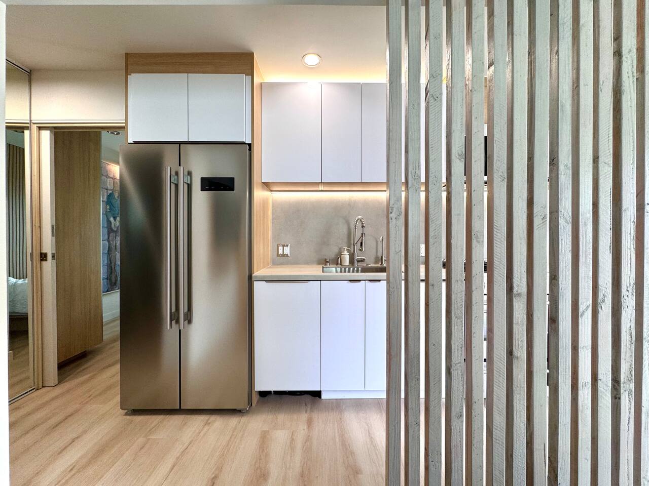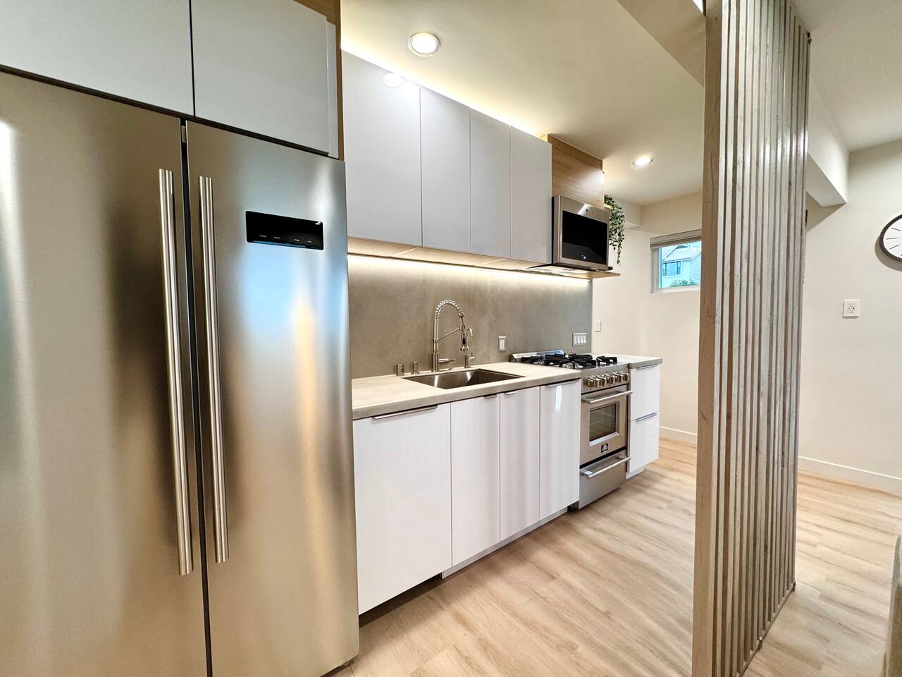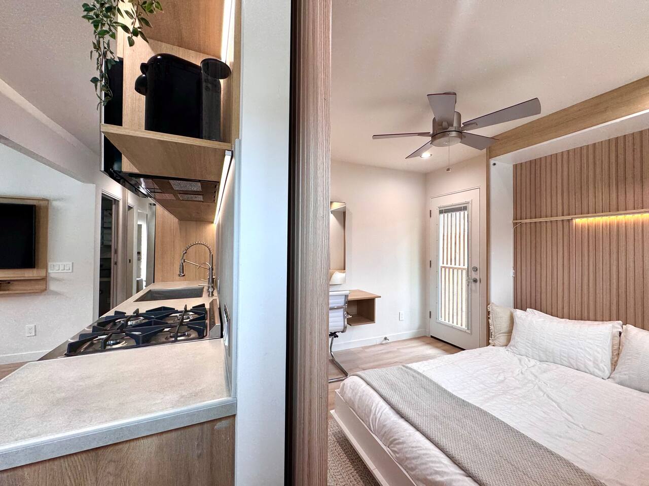 If convenience, independence, and elevated comfort is a priority for you, Titus Retreat is ideal for your vacation or extended stay. Enjoy vivid sunsets, sunrises, bay and city views in this west-facing iconic San Diego neighborhood. The home is designed with you in mind. Full-length mirrored closets, memory foam queen beds, and black out curtains. Spa-like, modern bathroom with rainfall shower, multiple body jets, and smart bidet toilet with a heated seat. Smart TV with complimentary movie apps. Full in-unit laundry amenities with ironing board and laundry essentials. Full kitchen with brand new, high-end modern appliances and cooking essentials, including a dishwasher, gas range, microwave, rice cooker, and smoothie blender. Hot beverage station features a coffee machine with pods, and tea kettle with assorted teas. Enjoy filtered water on tap. Craft ice molds in the freezer with various sized filtered ice cubes for optimal beverage experience. We provide a microwave-popcorn popper, spices and cooking basics, and a fully loaded snack basket with vacation essentials ~ electrolyte packets, on-the-go snack bars, and instant breakfast. The location is incredibly convenient because of the proximity to the highways, 5-10 minutes to beaches, Zoo, North Park, Balboa Park, Little Italy, and more. Or, take the San Diego Trolley, which is just a short 5 minute walk from Titus Retreat. Guest guidebook features recommendations and trolley info, or reach out to your host for more tips. If you bring a vehicle, you will have parking space in the private driveway, plus ample street parking with no restrictions. A few highlights about the walkable neighborhood: Titus Retreat is one minute walk to Robin’s Egg nature trail, which will take you on a 10 minute medium-difficulty hike along a mansion-studded canyon up to Mission Hills and Hillcrest neighborhoods. Historic Pioneer Park is at the top of the trail. Mission Hills is known for its timeless beauty and historic homes. Hillcrest is famous for its vibrant nightlife, vintage shopping, and inclusive community feel. One stop away on the trolley or a 10 minute walk to San Diego’s famous “Old Town” to learn the rich history of our beautiful city. Here you’ll find iconic tourist attractions, museums, artisan street fairs, shopping and restaurants (and, of course, Margaritas and Mexican food!) One stop away on the trolley, enter the heart of Little Italy and San Diego’s best Farmers Market every Saturday and Wednesday. Discover world-class shopping, dining, wine, and mixology along India Street. A few stops down on the trolley, discover Downtown San Diego, Gaslamp District, Convention Center, and Petco Park. 5 star hospitality customized just for you. Your host is a San Diego native with deep roots in the hospitality industry. Reach out anytime. Welcome home!